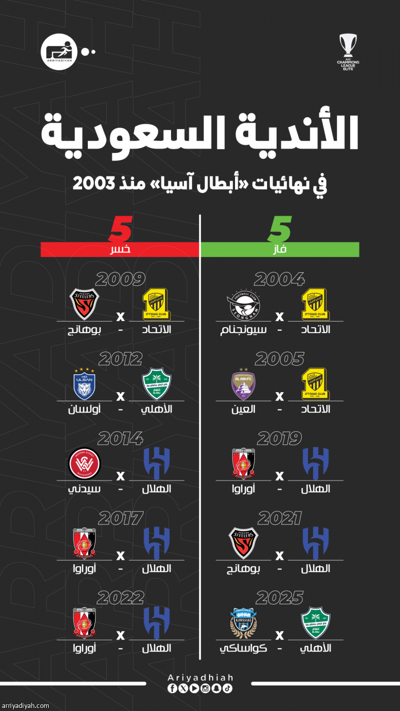 الأندية السعودية في نهائيات «أبطال آسيا» منذ 2003