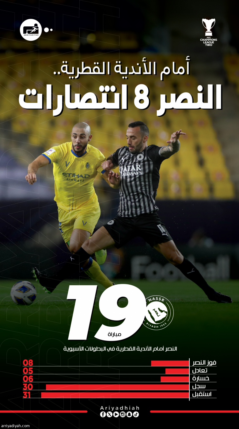 أمام الأندية القطرية.. النصر 8 انتصارات
