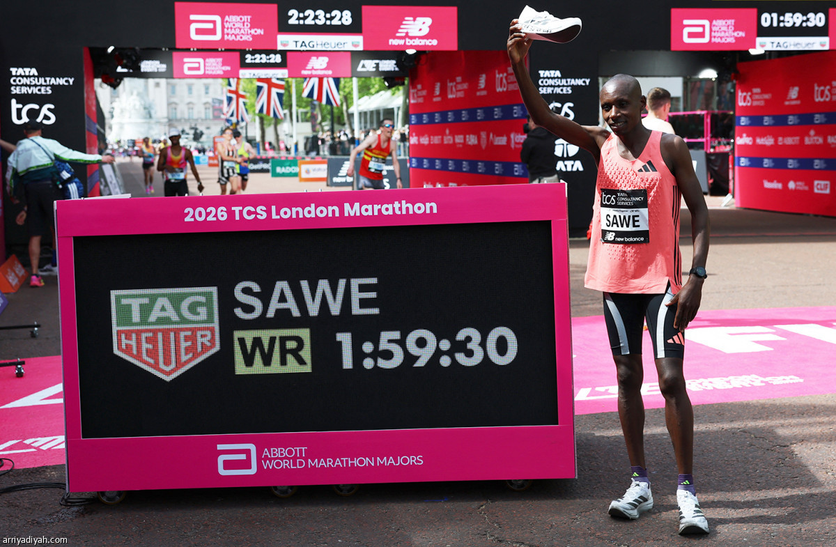 سجّل العداء الكيني سيباستيان ساوي، الأحد، رقمًا قياسيًا تاريخيًا جديدًا، بعدما حقق لقب ماراثون لندن، في ساعة واحدة و59 دقيقة، و30 ثانية، ليصبح العداء الأول في التاريخ الذي يكسر حاجز الساعتين في سباق ماراثون رسمي (الفرنسية) و(رويترز)