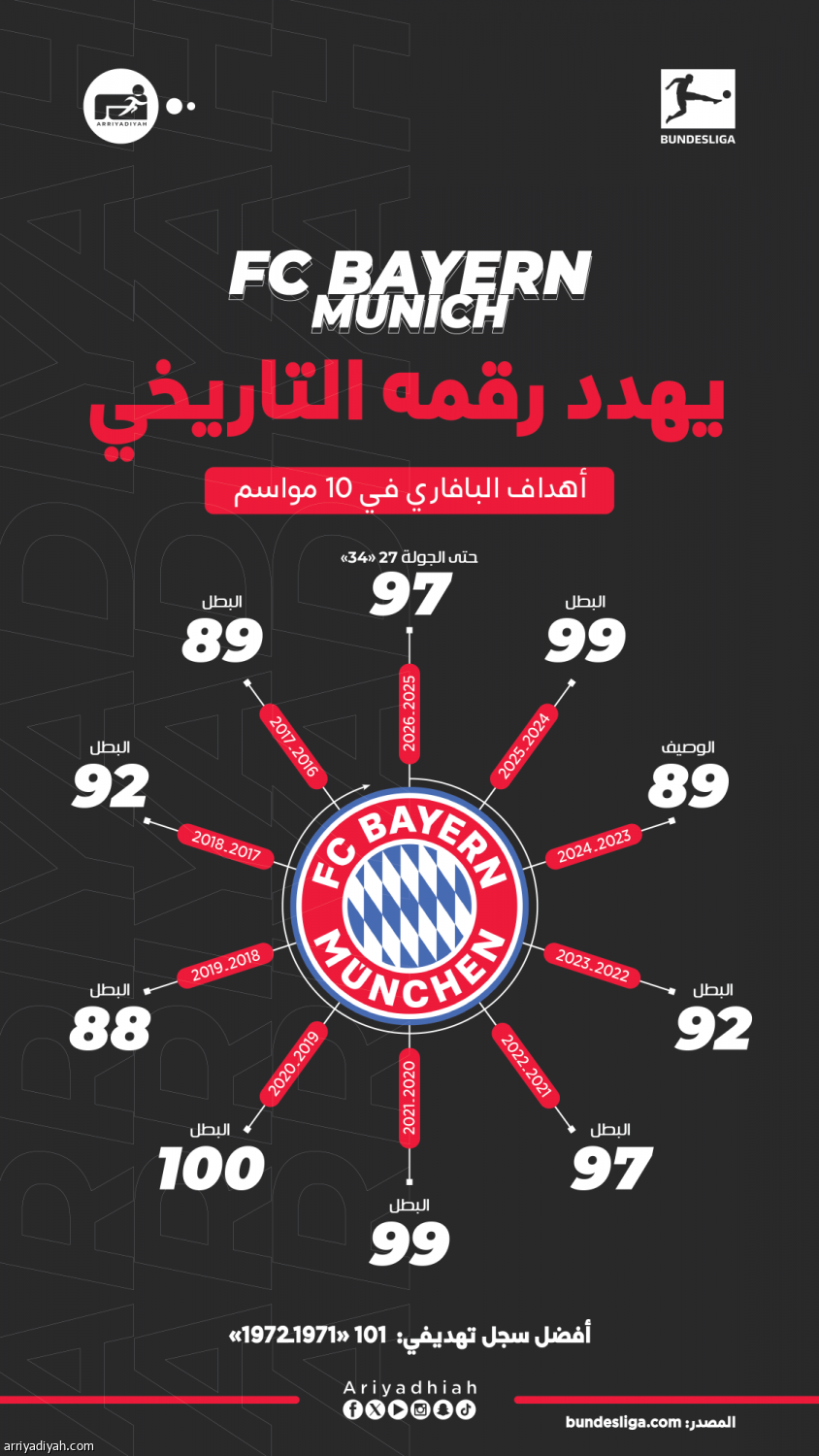 على مسافة 4 أهداف.. بايرن يخطط على تجاوز حاجز الـ 101