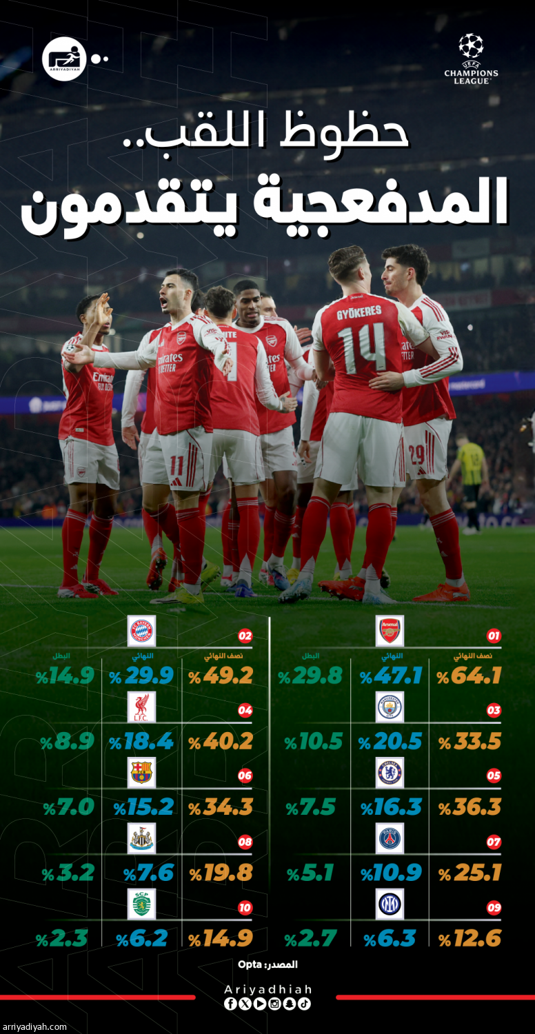 «الأبطال».. أرسنال المرشح الأفضل.. والريال وباريس يتراجعان