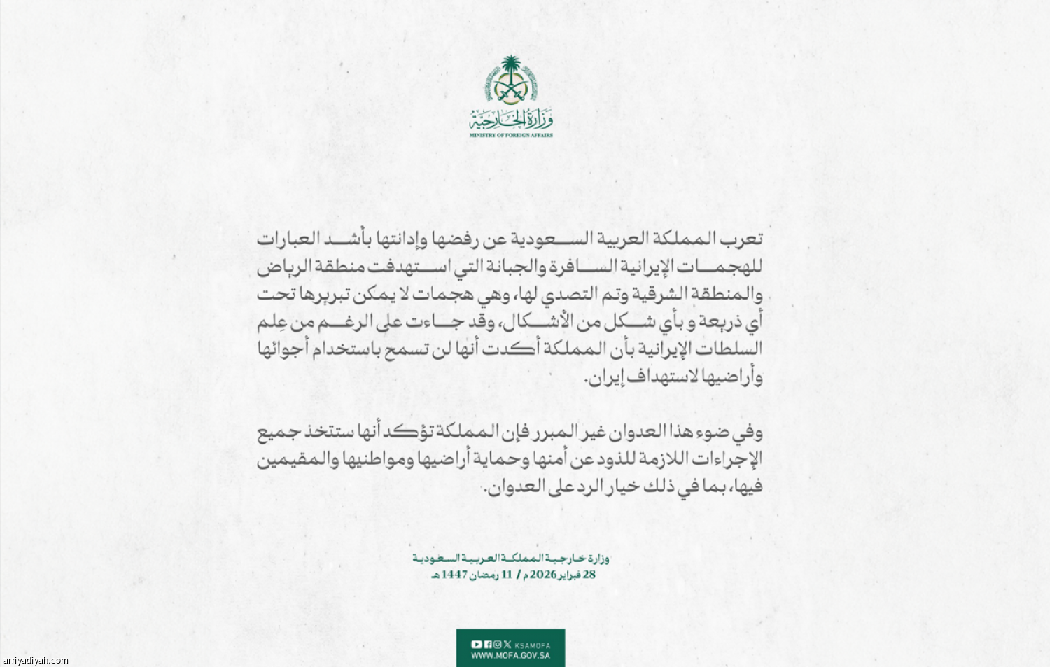 السعودية: اعتداءات إيران على الرياض والشرقية سافرة وجبانة
