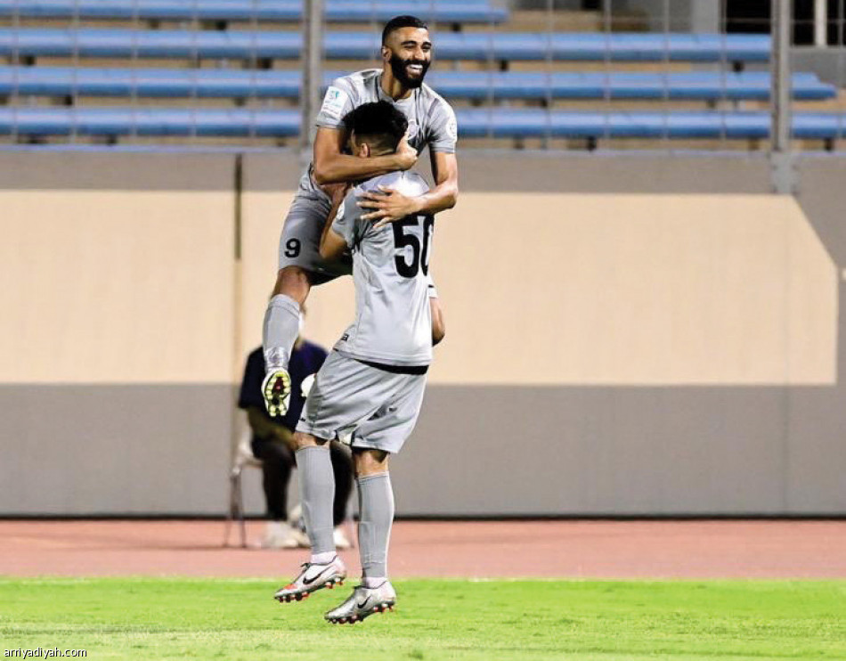 صورة التقطت أمس لمجاهد المنيع لاعب فريق الطائي يحتفل بعد تسجيله هدف التعادل (المركز الإعلامي ـ رابطة الدوري)