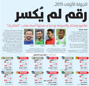 سجَّلت الجولة الأولى من موسم 2014ـ2015 من بطولة الدوري السعودي للمحترفين الرقم الأعلى من حيث تسجيل الأهداف في الجولة الافتتاحية في الدوري بواقع 27 هدفًا، منذ انطلاق دوري المحترفين موسم 2008ـ2009 حتى النسخة رقم 12 الأخيرة.