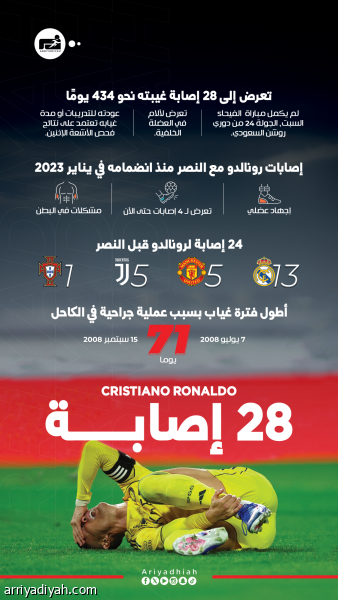 رونالدو.. 28 إصابة والأطول 71 يوما