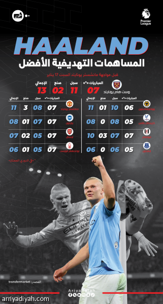 هالاند.. المساهمات التهديفية الأفضل