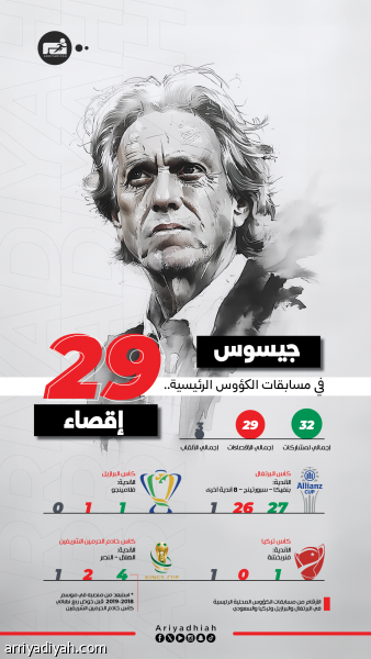 جيسوس في مسابقات الكؤوس الرئيسية.. 29 إقصاء