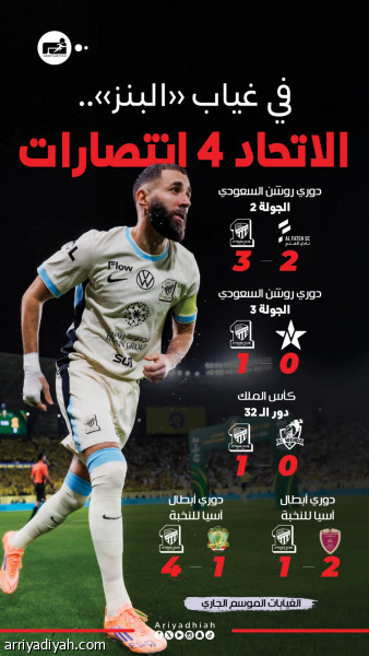 في غياب «البنز» .. الاتحاد 4 انتصارات