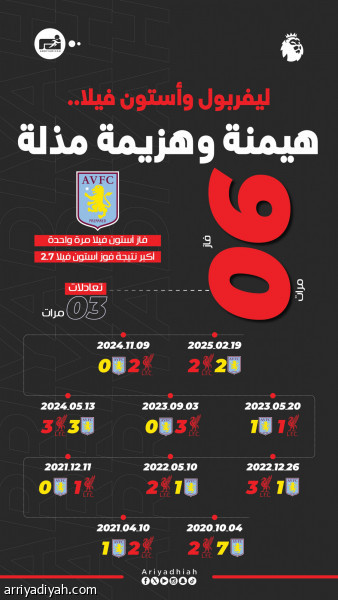 ليفربول وأستون فيلا.. هيمنة وهزيمة مذلة
