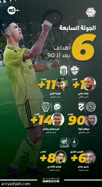الجولة السابعة .. 5 أهداف بعد الـ 90