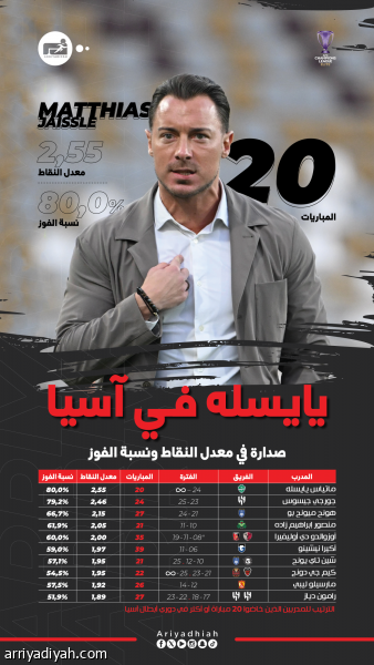 يايسله.. معدلات قياسية بعد 20 تحديًا آسيويًا