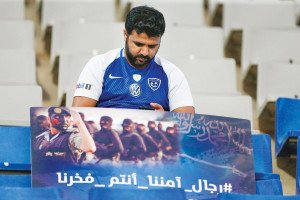 رجال الأمن دائما في القلوب.. هذا لسان حال كل مواطن سعودي وكل مقيم على أرض الوطن. شهدت مباراة فريق الهلال الأول لكرة القدم وضيفه الفتح أمس في ختام الدوري السعودي للمحترفين مشجعا هلاليا يجلس وأمامه لوحة مكتوب عليها هاشتاق ...