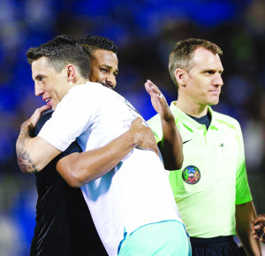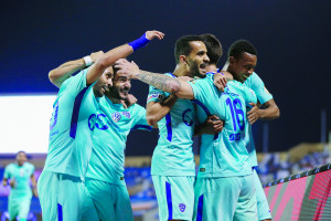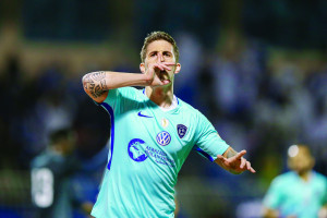 لا يعرف اليأس.. جاء من الخلف من أجل أن يحقق ما عجز عنه المهاجمون.. صورة التقطت للأوروجوياني نيوكلاس ميليسي لاعب وسط فريق الهلال الأول لكرة القدم ينطلق فرحاً بعد تسجيله الهدف الثاني لفريقه في مرمى الشباب.. في المباراة التي ...