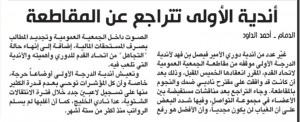 قررت لجنة الانضباط والأخلاق في الاتحاد السعودي لكرة القدم تغريم نادي الاتحاد 10,000 ريال، لحصول 6 من لاعبي فريقه الأول لكرة القدم على 6 بطاقات صفراء، أمام الاتفاق ضمن الجولة الـ 12 من الدوري السعودي للمحترفين، كما قررت إيقاف ...