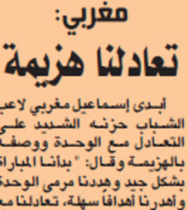 اعترف خير الدين مضوي مدرب فريق الوحدة بأن المباراة لم ترتق للمستوى الفني المطلوب الذي كنا نبحث عنه، موضحاً أنه كان يبحث عن نقطة وحيدة وتحققت، في ظل غياب ستة عناصر. من جهة أخرى أكد سامي الجابر مدرب الشباب أن الوحدة ركز على ...