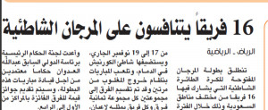 16 فريقاً يتنافسون على المرجان الشاطئية