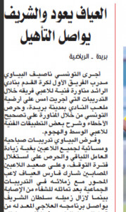 العياف يعود والشريف يواصل التأهيل