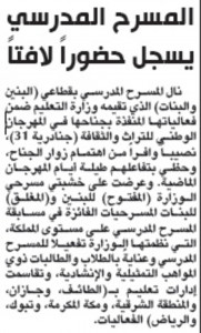 يستقبل قسم الطفولة المبكرة في جنـاح وزارة التعليم بالمهرجان الوطني للتراث والثقافة (الجنادرية 31) أكثر من 200 طفل يومياً. ويحوي قسم الطفولة المبكرة أنشطة تتوافق وتوجهـات برنامــج التحول الوطني 2020 ومشروع رؤية المملكة 2030 ...