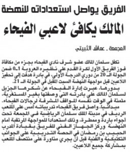 المالك يكافئ لاعبي الفيحاء
