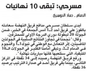 أعرب لاعب وسط النصر أحمد الفريدي عن سعادته بالفوز المثير الذي تحقق لفريقه أمام الوحدة 2-1 مساء اليوم الجمعة على ملعب الملك فهد الدولي بالرياض، ضمن الجولة الـ 18 من دوري جميل السعودي للمحترفين. وقال الفريدي صاحب هدف الفوز: ...