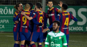 أنهى برشلونة مغامرة مضيفه كورنيا في بطولة كأس ملك إسبانيا لكرة القدم وأطاح به خارج البطولة بالفوز عليه 2-0 الخميس في دور الـ32 للبطولة.