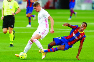 سجل سيرجو راموس مدافع فريق ريال مدريد الإسباني، أمس، مشاركته الـ45 أمام برشلونة في جميع المسابقات، وتلقى هزيمة في 22 مباراة، بينما شارك في تحقيق الفوز في 14، وحقق 10 تعادلات وسجل 4 أهداف جميعها بالرأس.