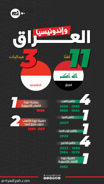 العراق وإندونيسيا 11 لقبا و3 ميداليات