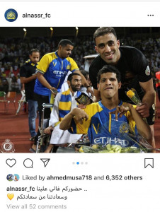 نالت فيديوهات صحيفة "الرياضية"، عبر موقع التواصل الاجتماعي "تويتر"، التي نقلت من خلالها احتفالات شباب فريق النصر، أمس الأول، بتحقيق لقب بطولة الدوري السعودي للشباب، نحو 700 ألف مشاهدة.