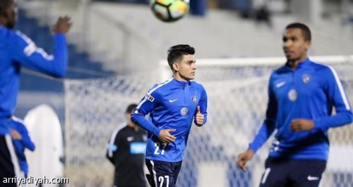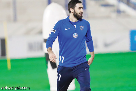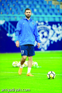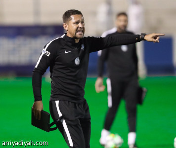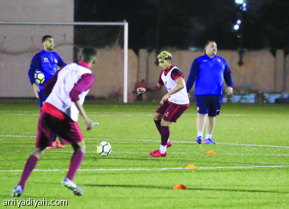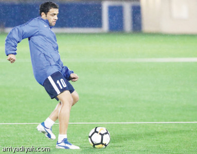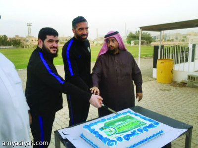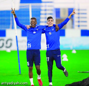 وسلم الأمير نواف بن سعد، رئيس النادي، درعاً إلى دياز، في ملعب جامعة ...