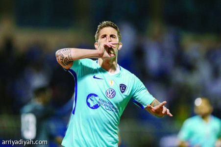 لا يعرف اليأس.. جاء من الخلف من أجل أن يحقق ما عجز عنه المهاجمون.. صورة التقطت للأوروجوياني نيوكلاس ميليسي لاعب وسط فريق الهلال الأول لكرة القدم ينطلق فرحاً بعد تسجيله الهدف الثاني لفريقه في مرمى الشباب.. في المباراة التي ...