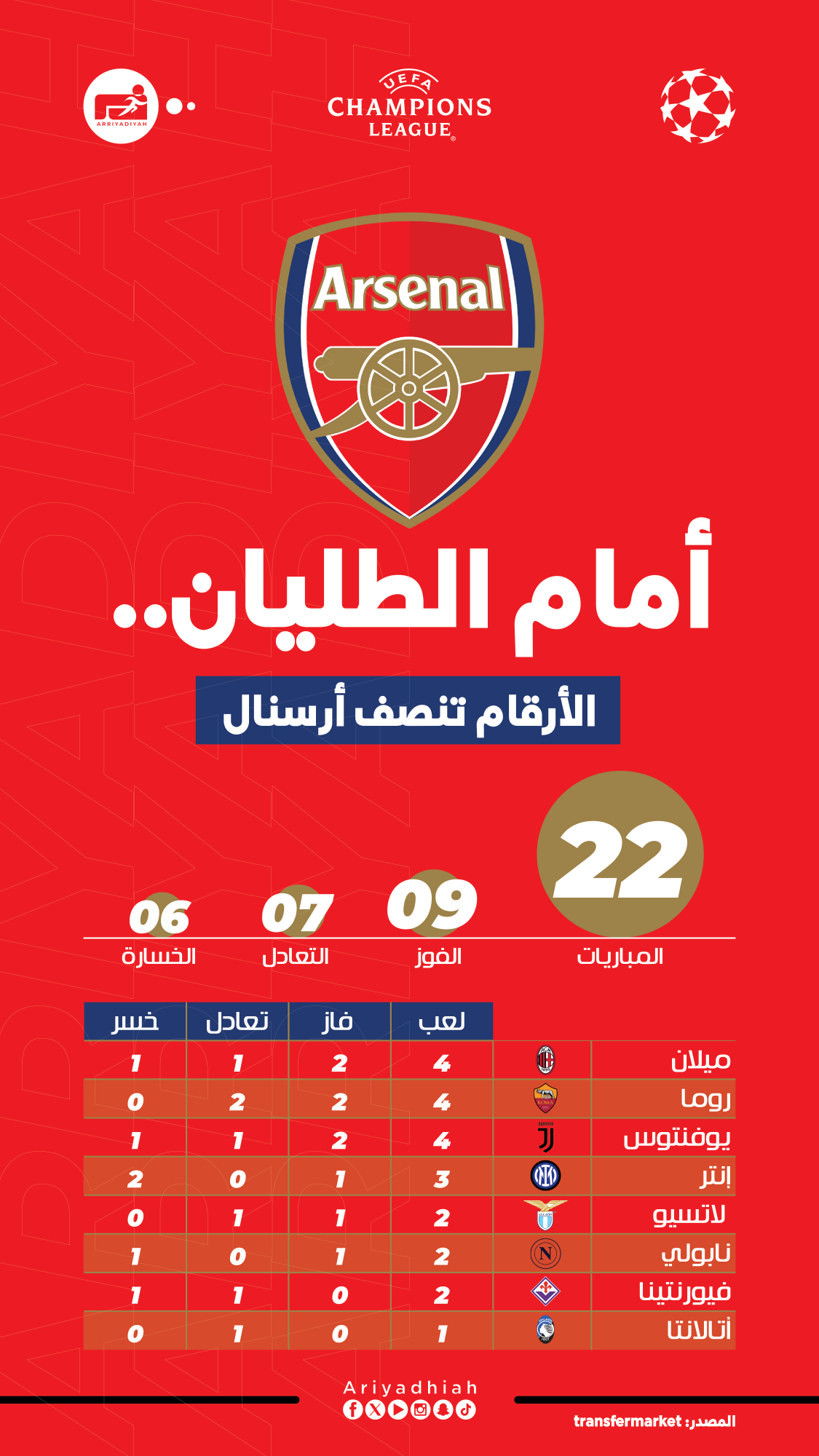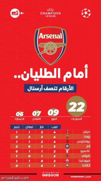 في المواجهة الرابعة.. إنتر يهدد أرقام أرسنال التاريخية